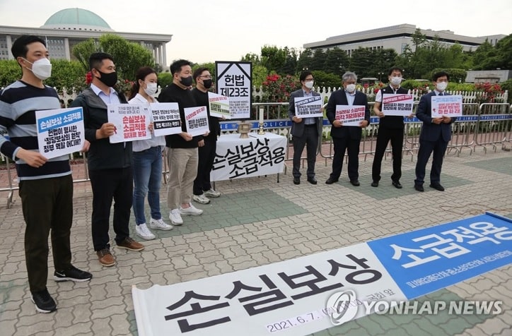 Kêu gọi pháp luật về bồi thường tổn thất Luật Đại diện từ các ngành bị ảnh hưởng, chủ doanh nghiệp nhỏ ở các công ty kinh doanh dược liệu điều trị bệnh thận và các tổ chức xã hội dân sự tổ chức một cuộc họp báo trước Quốc hội ở Yeouido, Seoul vào ngày 7 và thực hiện một cuộc biểu diễn thúc giục việc áp dụng hồi tố bồi thường tổn thất.